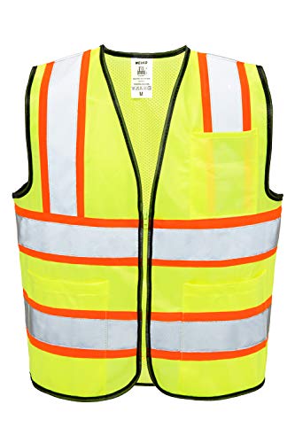 - Remain visible both day and night with the fluorescent yellow body and orange trimmed 2-inch wide reflective silver strip design
